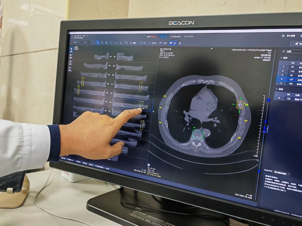 2024年10月25日,銀川市第一人民醫(yī)院醫(yī)生使用人工智能輔助診斷系統(tǒng)閱片。