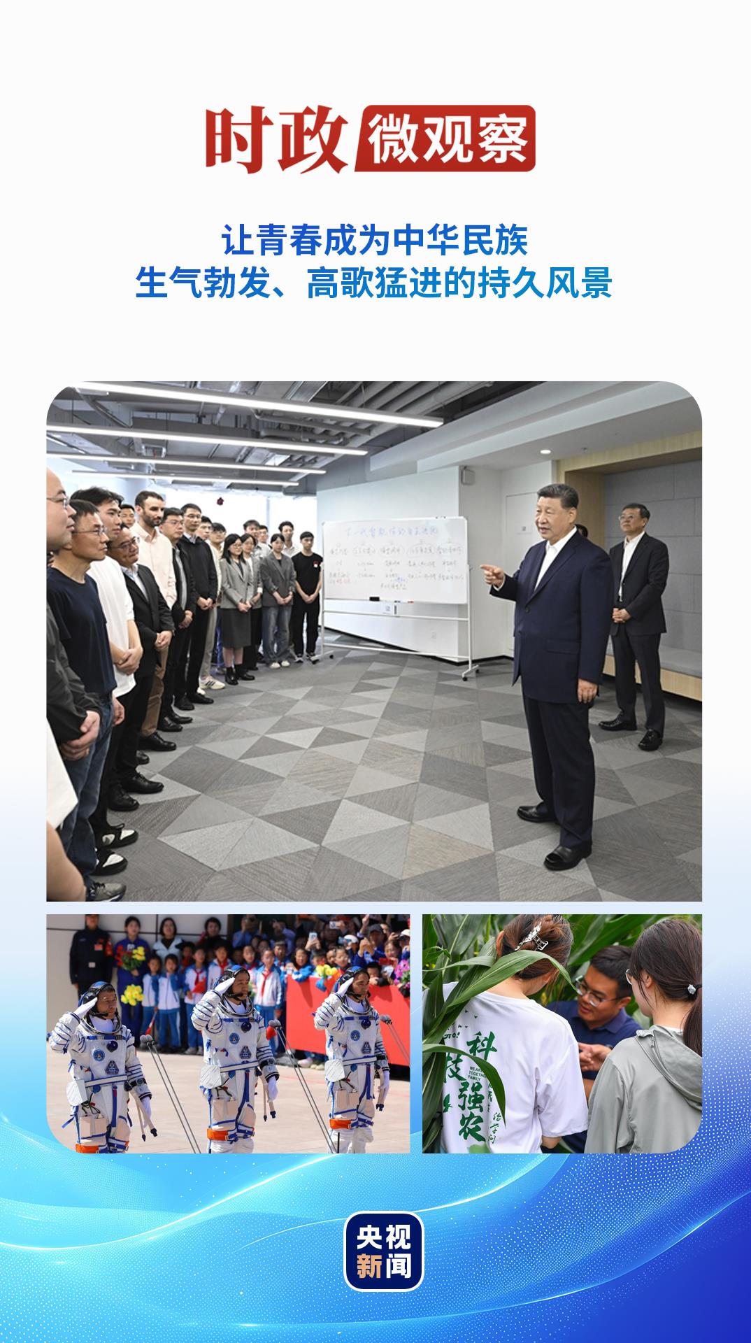 今年五四青年節(jié)前,習(xí)近平總書記再次來(lái)到年輕人中間。4月29日,在上?!澳K倏臻g”大模型創(chuàng)新生態(tài)社區(qū),總書記同青年創(chuàng)新人才親切交流,勉勵(lì)大家“把個(gè)人奮斗同國(guó)家前途命運(yùn)緊緊聯(lián)系在一起,跑好歷史的接力棒,在推進(jìn)中國(guó)式現(xiàn)代化的寬廣舞臺(tái)上綻放絢麗的青春光彩”。