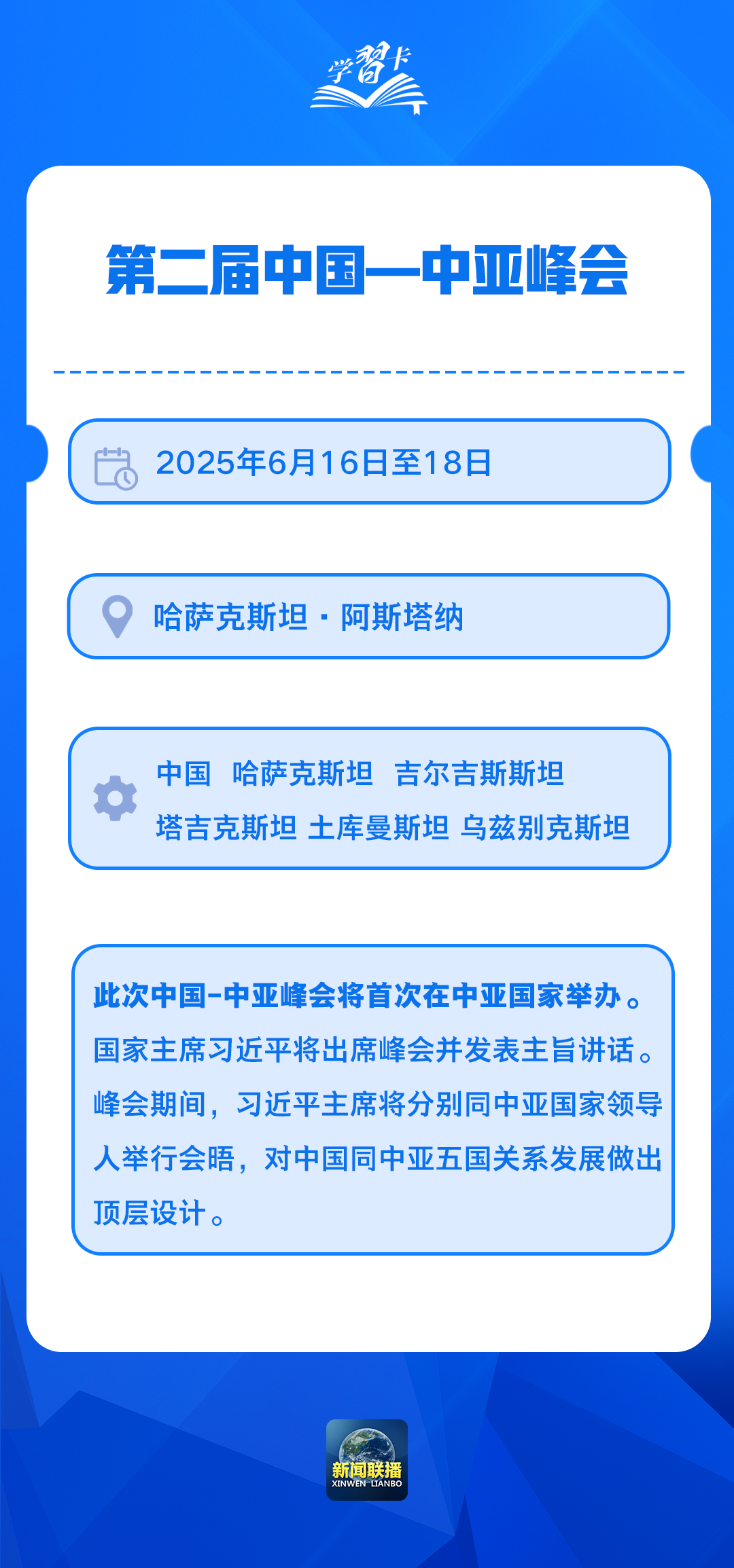 應(yīng)哈薩克斯坦共和國總統(tǒng)托卡耶夫邀請,國家主席習(xí)近平將于6月16日至18日赴哈薩克斯坦阿斯塔納出席第二屆中國—中亞峰會。
