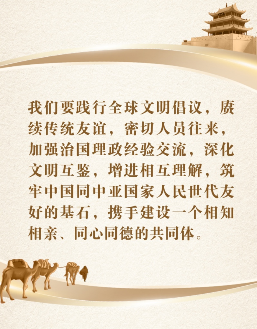 兩千年前,駝鈴叮咚串起中國與中亞的文明星火。如今,在共建“一帶一路”的脈搏里,中國與中亞國家的文明對話不斷加深,在新時代煥發(fā)出勃勃生機和旺盛活力。