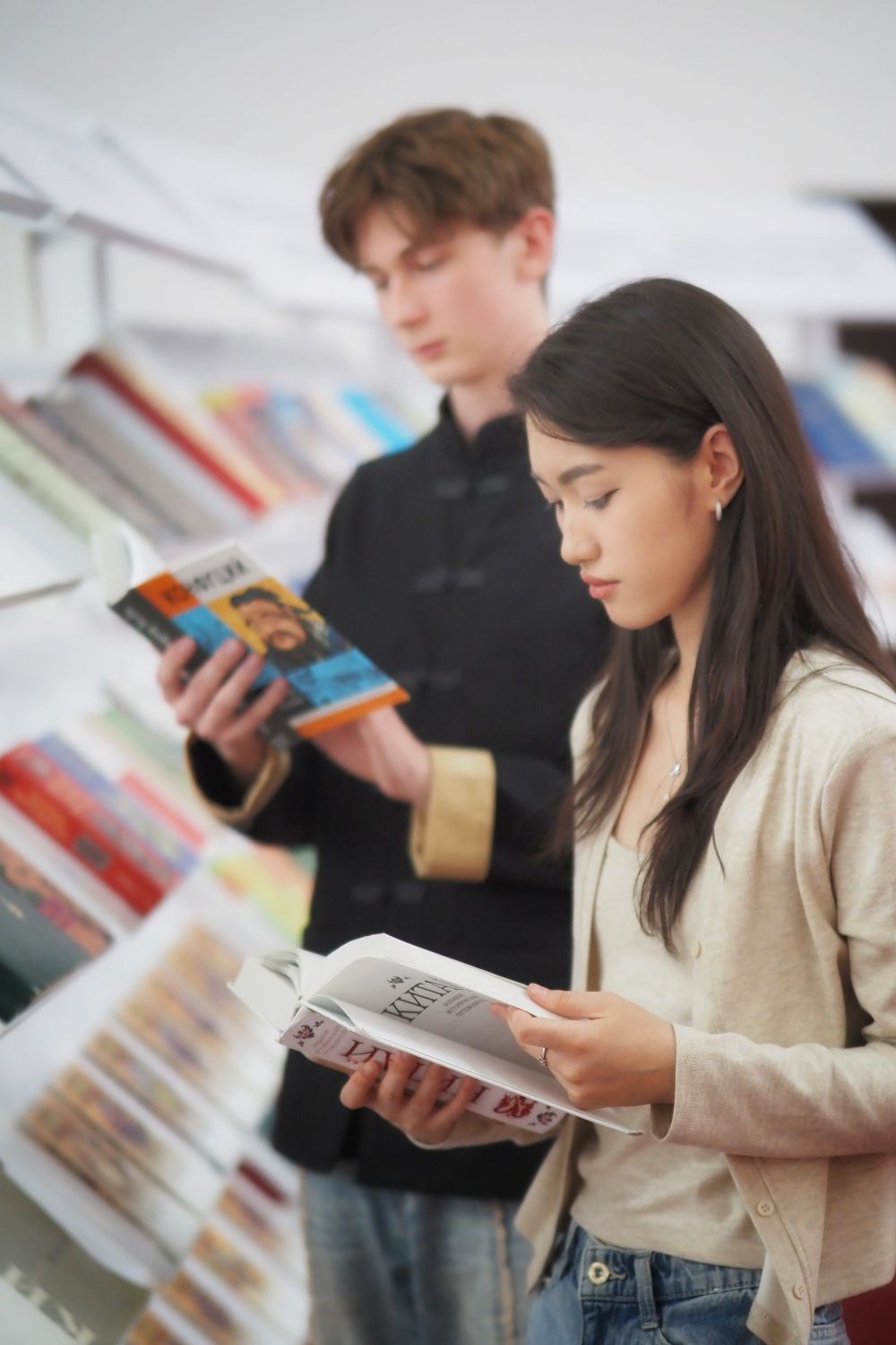 2025年5月31日,在哈薩克斯坦法拉比國立大學,學生在“中國絲路文學周”活動現(xiàn)場閱讀圖書。2025哈薩克斯坦“中國絲路文學周”開幕式暨“絲路新韻:文學讓生活更美好”主題作家座談會在哈薩克斯坦法拉比國立大學成功舉辦。后續(xù),還將有多場文學交流活動在哈薩克斯坦主要城市舉辦。