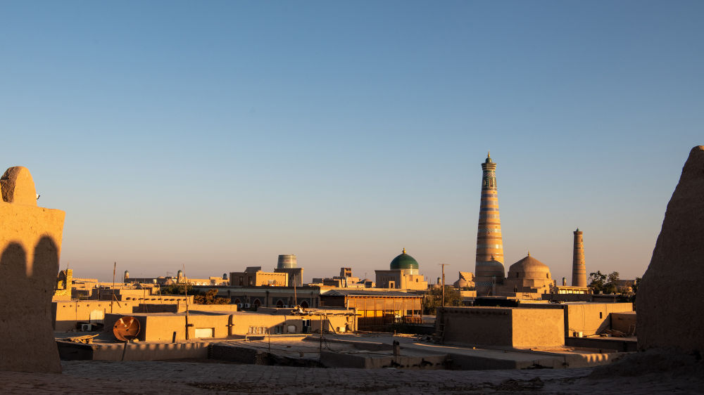 這是2023年9月21日拍攝的烏茲別克斯坦花拉子模州的希瓦古城。希瓦古城是古絲綢之路上重要的東西交匯之地,是烏茲別克斯坦第一處世界文化遺產(chǎn)。中烏合作開展希瓦古城保護修復工作,對古城內(nèi)的阿米爾·圖拉經(jīng)學院和哈?!つ吕聨焓矂e吉清真寺及周圍環(huán)境展開重點修復,讓希瓦這座古城更加絢爛奪目。