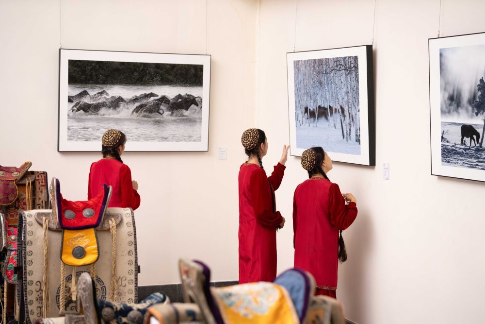 2025年6月3日,人們在土庫曼斯坦阿什哈巴德參觀“騏驥馳騁——2025中國馬文化展”。展覽從中國源遠流長的馬文化切入,連接中土兩國人民對于馬的審美喜好與情感寄托。