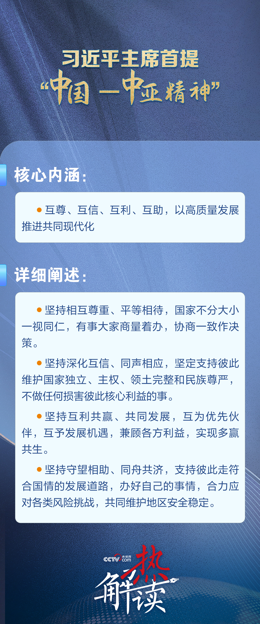 當(dāng)?shù)貢r(shí)間6月17日,習(xí)近平主席在哈薩克斯坦首都阿斯塔納出席第二屆中國—中亞峰會(huì)并作主旨發(fā)言,首次提出“中國—中亞精神”。
