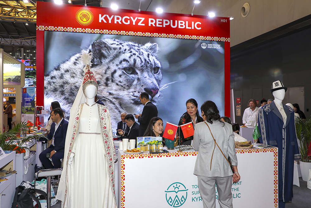 △ 2025年5月27日,2025上海國際旅游交易博覽會(huì)在世博展覽館舉行。圖為吉爾吉斯斯坦旅游展臺(tái)。