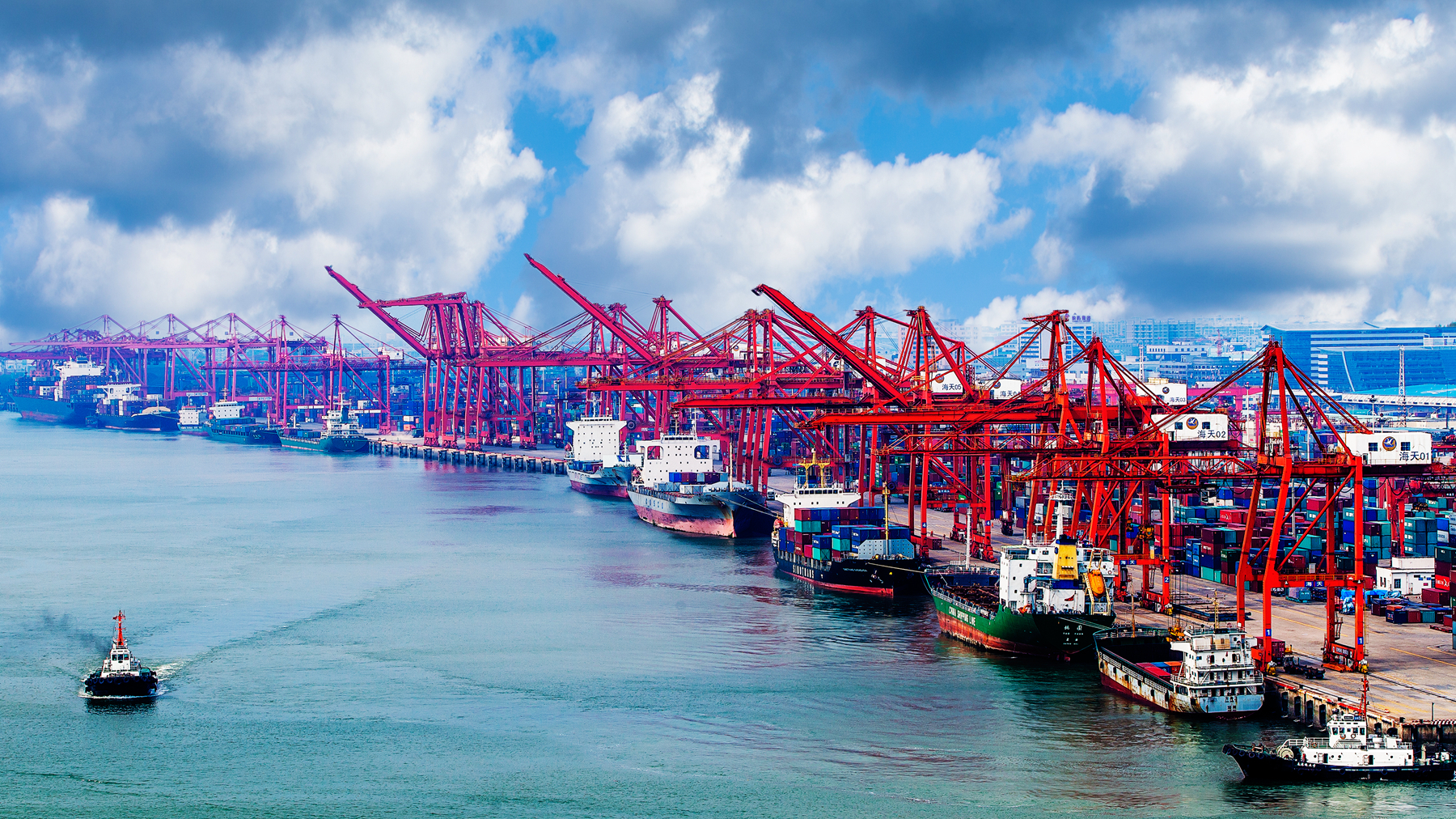 碧海藍天間,廈門港東渡港區(qū)“絲路海運始發(fā)港”幾個大字格外醒目。