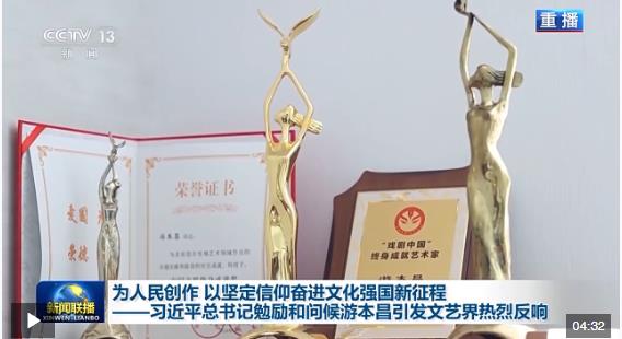 內(nèi)蒙古蘇尼特右旗烏蘭牧騎指導(dǎo)員 賈鳳英:總書記對游老的勉勵和問候,同樣也是對廣大文藝工作者的關(guān)懷和鼓舞,我們將忠誠踐行烏蘭牧騎“紅色文藝輕騎兵”的光榮使命,以德藝雙馨為立身之本,扎根生活沃土,服務(wù)農(nóng)牧民群眾,努力創(chuàng)作更多接地氣、傳得開、留得下的優(yōu)秀作品。
