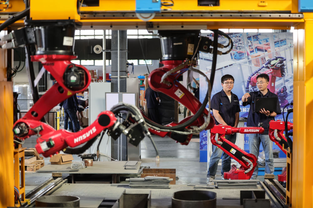 2024年6月3日,沈陽新松機(jī)器人自動化股份有限公司的機(jī)器人研發(fā)工程師討論智能焊接機(jī)器人平臺焊接方案。機(jī)器人工程技術(shù)人員作為人力資源和社會保障部2022年6月公布的18個新職業(yè)之一,在研發(fā)設(shè)計機(jī)器人工作中扮演著重要角色。讓“鐵疙瘩”聽懂話、干對活,是他們的重要工作內(nèi)容。