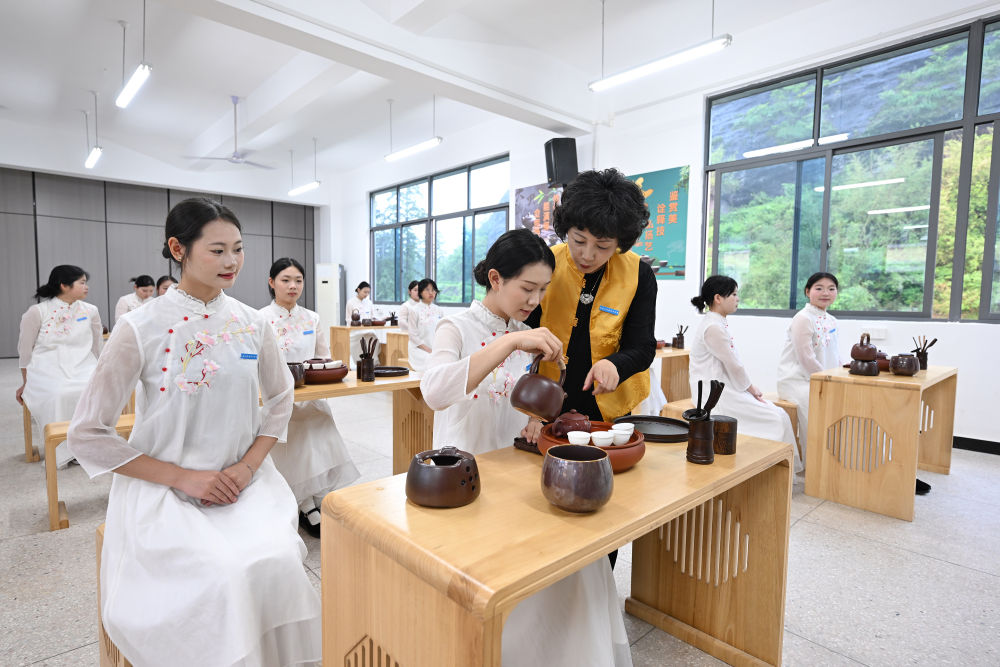 2025年5月8日,福建省武夷山旅游職業(yè)中專學(xué)校的茶藝?yán)蠋熢诮淌诓杷嚒=陙?,武夷山市依托?dāng)?shù)夭璁a(chǎn)業(yè)優(yōu)勢,持續(xù)推進(jìn)茶文化、茶技能教育走進(jìn)校園,在當(dāng)?shù)芈殬I(yè)學(xué)校重點開設(shè)了茶藝、茶葉加工、茶營銷等專業(yè),為當(dāng)?shù)夭璁a(chǎn)業(yè)發(fā)展、茶文化傳播培養(yǎng)職業(yè)技能人才。
