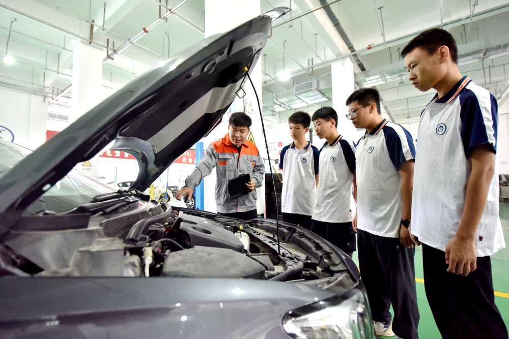 2024年6月7日,河北省邢臺市威縣職業(yè)技術(shù)教育中心教師指導(dǎo)學(xué)生學(xué)習(xí)汽車維修技術(shù)。近年來,威縣加大職業(yè)技術(shù)人才培養(yǎng)力度,通過與企業(yè)聯(lián)合辦學(xué),創(chuàng)新校企合作、定向培養(yǎng)、工學(xué)結(jié)合等辦學(xué)模式,拓寬職業(yè)教育畢業(yè)生就業(yè)渠道。