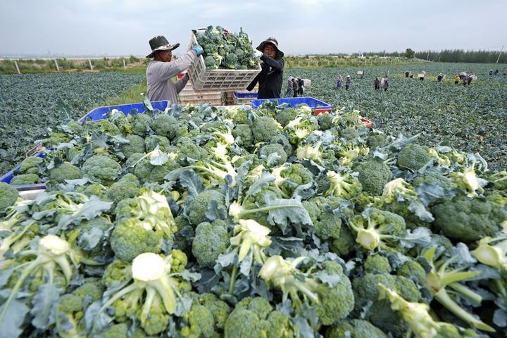 2025年7月18日,工作人員在寧夏固原市原州區(qū)彭堡鎮(zhèn)萬(wàn)畝冷涼蔬菜基地運(yùn)輸西蘭花。固原依托高海拔、氣候冷涼等“冷資源”優(yōu)勢(shì),大力發(fā)展冷涼蔬菜產(chǎn)業(yè),著力打造“六盤(pán)山冷涼蔬菜”區(qū)域公用品牌。目前已建成冷涼蔬菜規(guī)?;N植基地130余個(gè),種植面積穩(wěn)定在50萬(wàn)畝,年產(chǎn)鮮菜200萬(wàn)噸以上。“六盤(pán)山冷涼蔬菜”這張打造的“綠色名片”,已成為當(dāng)?shù)剜l(xiāng)村振興發(fā)展之路上的“熱產(chǎn)業(yè)”