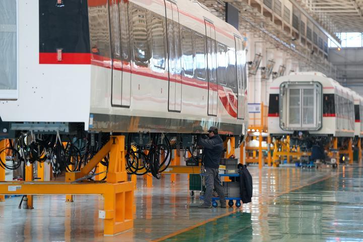 2025年2月14日,工作人員在京投裝備河北京車智能制造基地總組裝車間內(nèi)工作。京投裝備河北京車智能制造基地位于河北省保定市,是貫徹京津冀協(xié)同發(fā)展戰(zhàn)略的重要項(xiàng)目?!氨本┭邪l(fā)+河北制造” 的模式,既發(fā)揮了北京的創(chuàng)新優(yōu)勢(shì),又拉動(dòng)了河北當(dāng)?shù)氐木蜆I(yè)和經(jīng)濟(jì),對(duì)培育首都軌道交通及其關(guān)鍵零部件等上下游產(chǎn)業(yè)、提升河北高端裝備制造水平發(fā)揮了推動(dòng)作用。