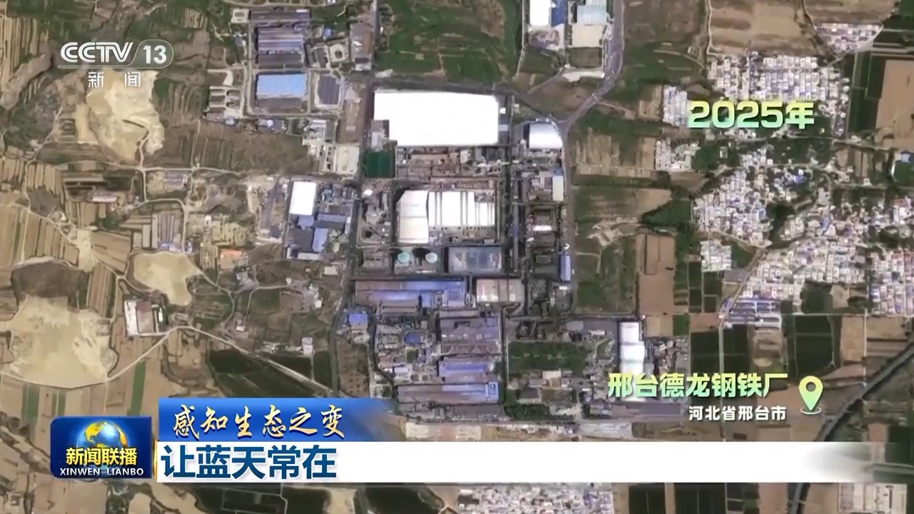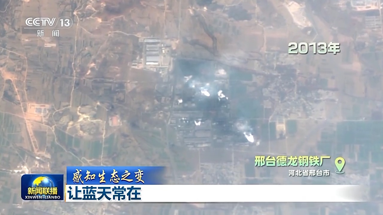 這是當(dāng)時(shí),環(huán)境監(jiān)測(cè)衛(wèi)星拍到的德龍鋼鐵廠,霧霾最嚴(yán)重的時(shí)候幾乎看不出廠區(qū)輪廓。而如今,卻是清晰可見(jiàn),綠意蔥蔥。