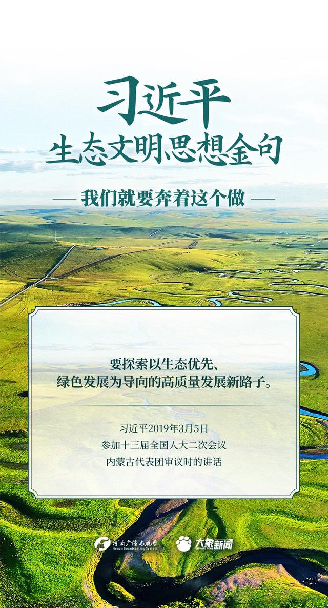 黨的十八大以來(lái),習(xí)近平總書(shū)記把生態(tài)文明建設(shè)擺在治國(guó)理政突出位置,大力推動(dòng)生態(tài)文明理論創(chuàng)新、實(shí)踐創(chuàng)新、制度創(chuàng)新,創(chuàng)造性提出一系列新理念新思想新戰(zhàn)略,形成了習(xí)近平生態(tài)文明思想,對(duì)生態(tài)文明建設(shè)的時(shí)代之問(wèn)、世界之問(wèn)、人民之問(wèn)作出的科學(xué)解答。大象新聞推出《習(xí)近平生態(tài)文明思想金句》系列策劃,今天推出《我們就要奔著這個(gè)做》。