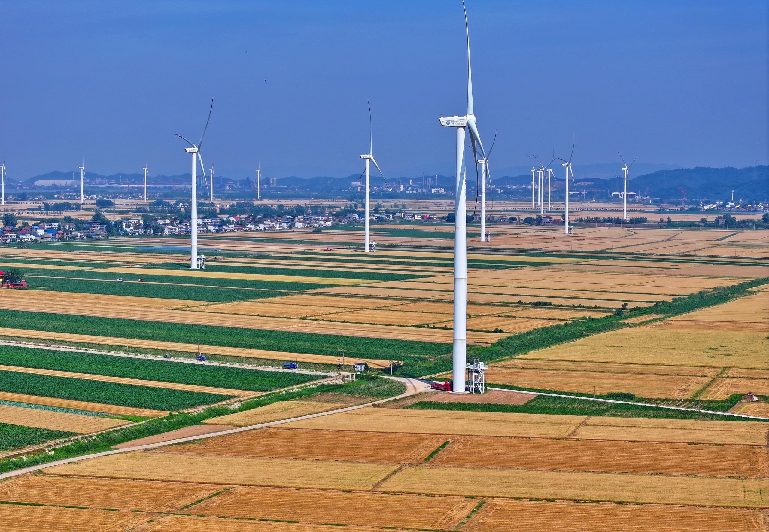 江西九江長(zhǎng)江沿岸的風(fēng)力發(fā)電機(jī)