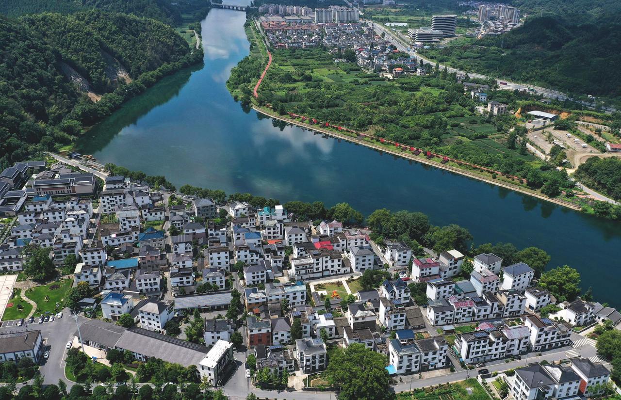 在衢州市開(kāi)化縣拍攝的錢塘江源頭河——馬金溪沿岸金星村。新華社記者 黃宗治 攝