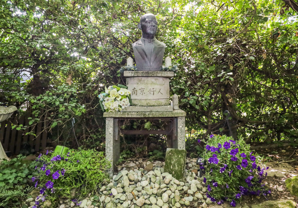 1950年,拉貝逝世,被安葬在柏林西郊。墓碑周圍是從南京移栽而來的竹子、梅花和菊花。基座前鋪有雨花石。墓碑前方矗立著拉貝半身雕像,其下立有紀(jì)念碑,用中德雙語鐫刻著:“感恩——永遠(yuǎn)銘記拉貝先生的國際人道主義善舉!中國·南京?!蹦骨皵[放著憑吊者送上的簇簇鮮花。