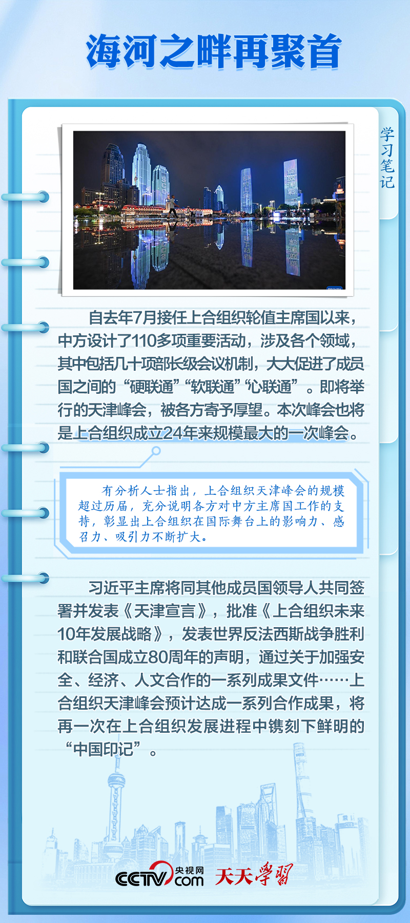 天天學習8月31日至9月1日,2025年上海合作組織峰會將在天津舉行。習近平主席將同20多位外國領(lǐng)導(dǎo)人和10位國際組織負責人聚首海河之濱,出席上合組織成立以來規(guī)模最大的一次峰會。