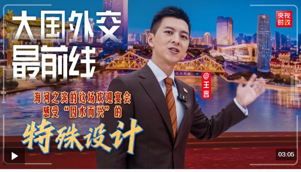 天津依河傍海,自古便是連接南北、溝通中西的樞紐,而走過24載的上合組織,成立于黃浦江畔、聚首在海河之濱。在歡迎宴會(huì)現(xiàn)場,“大國外交最前線”也注意到了一個(gè)“因水而興”的特殊設(shè)計(jì),一起去看一看吧!