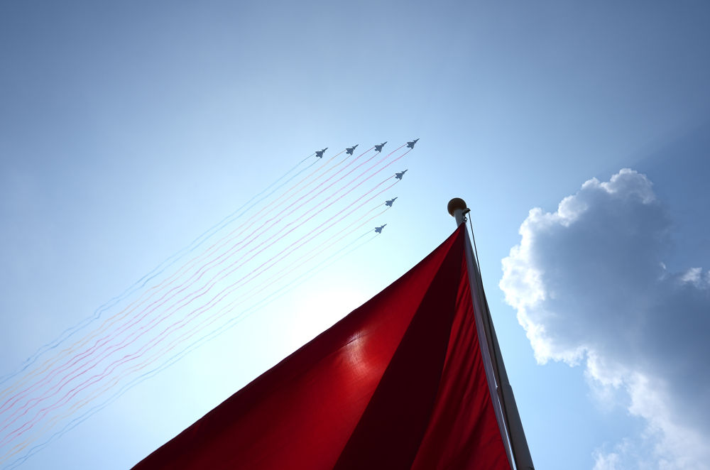 當(dāng)置身歡呼的人群,遠(yuǎn)望湛藍(lán)天空,看著7架殲-10表演機(jī)呼嘯而過,留下14道絢麗的彩煙,耳畔再次回響這豪邁的宣示——中華民族偉大復(fù)興勢不可擋!人類和平與發(fā)展的崇高事業(yè)必將勝利!