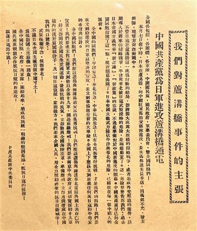 《中國共產(chǎn)黨為日軍進攻盧溝橋通電》