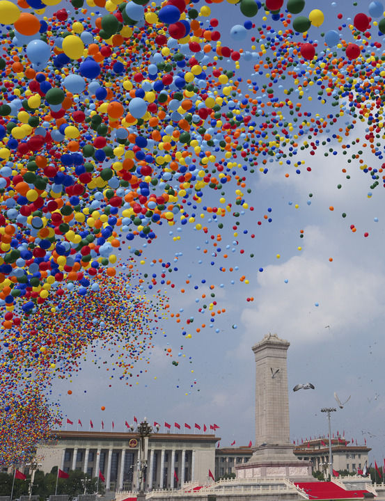 2025年9月3日,紀(jì)念中國人民抗日戰(zhàn)爭暨世界反法西斯戰(zhàn)爭勝利80周年大會在北京隆重舉行。這是紀(jì)念大會現(xiàn)場放飛氣球和鴿子。新華社記者 牟宇 攝