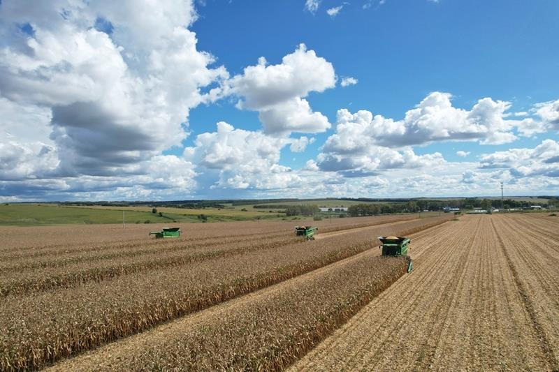 2025年9月10日,在北大荒集團(tuán)黑龍江建設(shè)農(nóng)場(chǎng)有限公司第三管理區(qū),大馬力機(jī)車在進(jìn)行玉米搶收作業(yè)。