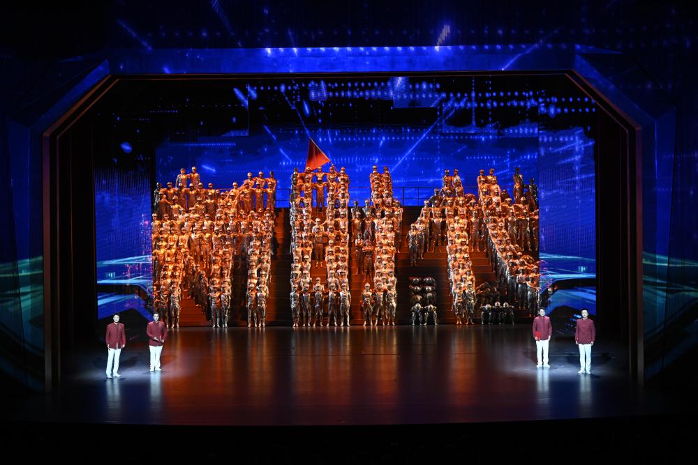 演出共3個(gè)篇章,展現(xiàn)新疆社會(huì)主義建設(shè)的火熱場(chǎng)景,表現(xiàn)改革開放給新疆帶來的蓬勃生機(jī),描繪新疆各族兒女同心筑夢(mèng)新時(shí)代的美好圖景。