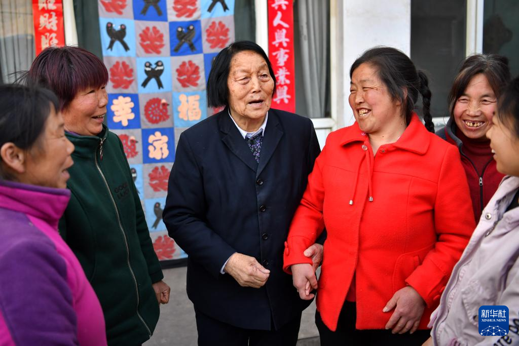 2019年3月23日,申紀(jì)蘭(左三)在山西省平順縣西溝村與村民分享全國兩會(huì)精神。新華社記者 曹陽 攝