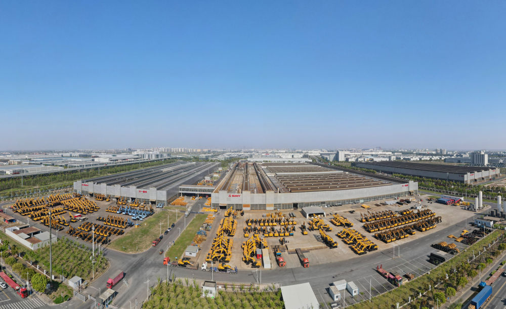 空中俯瞰上海三一重機股份有限公司外景(無人機全景照片,2025年4月15日攝)。新華社記者 方喆 攝