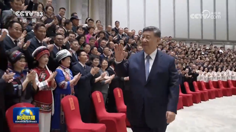 下午4時15分許,習近平等來到廣州白云國際會議中心,全場響起長時間熱烈掌聲。習近平向大家揮手致意,不時同代表親切交流,并同大家合影留念。