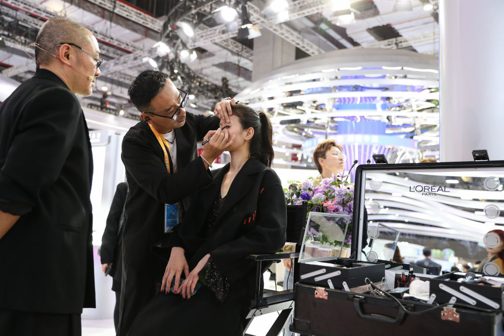 2025年11月7日,觀眾在第八屆進博會消費品展區(qū)歐萊雅展臺體驗美妝服務。歐萊雅是進博會八屆“全勤生”。本屆進博會共有170家企業(yè)和27家機構成為簽約參展的八年“全勤生”,進博會“全勤生”們的參會熱情印證了中國持續(xù)推動高水平對外開放的堅定姿態(tài),也彰顯了中國為各國企業(yè)提供共享中國市場寶貴機遇的誠意。