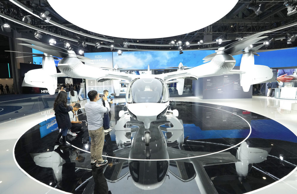 2025年11月5日在第八屆進博會汽車及智慧出行展區(qū)拍攝的時的科技E20 eVTOL(電動垂直起降飛行器)。在第八屆進博會上,一批新型移動出行產品與創(chuàng)新技術集中亮相。從智能駕駛到低空出行,從新能源解決方案到人性化設計……一幅多元化、立體化的未來出行圖景正徐徐展開。