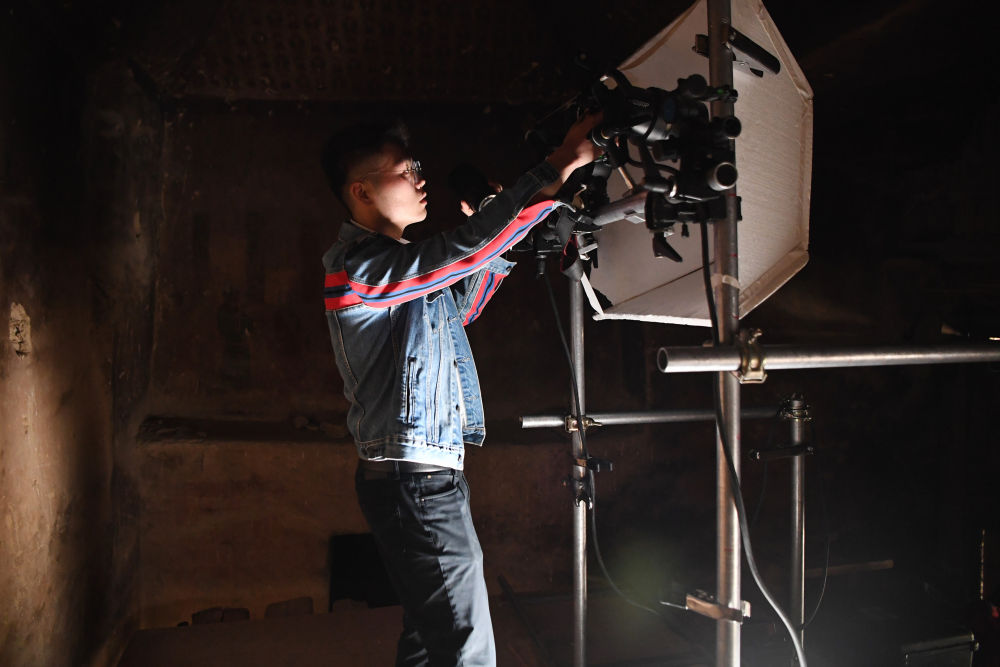 2023年4月25日,敦煌研究院文物數(shù)字化保護(hù)團(tuán)隊圖像采集人員熊業(yè)騰在洞窟內(nèi)調(diào)試設(shè)備,準(zhǔn)備采集壁畫圖像。30多年前,敦煌研究院便嘗試以數(shù)字技術(shù)讓古老石窟“芳華永駐”。2016年,“數(shù)字敦煌”資源庫上線,首次向全球免費共享30個敦煌石窟的高清圖像和全景漫游,用戶足不出戶就能欣賞到高清的敦煌文化數(shù)字資源,目前訪問用戶遍布全球78個國家,累計訪問量超過2000萬次。