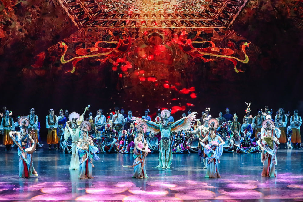 2025年9月20日,演員在敦煌大劇院表演新版《絲路花雨》。1979年,大型民族舞劇《絲路花雨》在中國西北誕生。編創(chuàng)者們從敦煌莫高窟的壁畫和彩塑中尋找靈感,將壁畫上凝固了千年的舞姿,轉(zhuǎn)化為動態(tài)舞蹈語言。40多年來,《絲路花雨》累計演出超4000場,足跡遍布40多個國家和地區(qū),被譽為“中國舞劇的里程碑”和“活的敦煌壁畫、美的藝術(shù)享受”。此次新版歷經(jīng)兩年半創(chuàng)排,通過復(fù)原與創(chuàng)新對經(jīng)典藝術(shù)進(jìn)行當(dāng)代詮釋,彰顯了中華優(yōu)秀傳統(tǒng)文化的生命力。