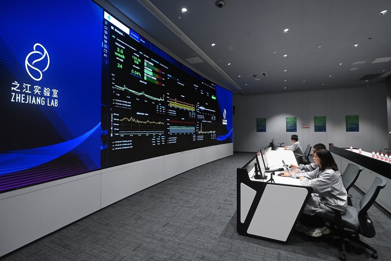 之江實(shí)驗(yàn)室計(jì)算與數(shù)據(jù)中心的工程師通過(guò)“之江云”系統(tǒng)監(jiān)測(cè)服務(wù)器集群的運(yùn)行狀態(tài)。新華社記者 黃宗治 攝