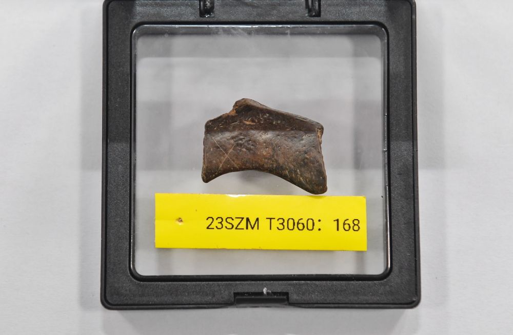 2023年12月5日拍攝的從四川資陽濛溪河遺址群出土的有X形劃痕的骨器。該遺址是國際罕見的同時包含豐富石器、動物與植物遺存的“全科型”遺址,入選了“2024年度全國十大考古新發(fā)現(xiàn)”。