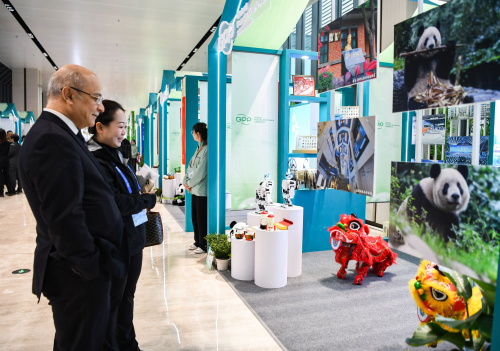 2024年11月26日,參會嘉賓在2024全球熊貓伙伴大會間隙觀看舞獅機(jī)器人表演。