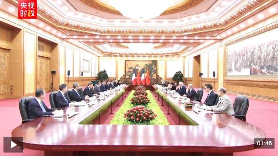 馬克龍說:“感謝主席先生,繼此前對北京和廣州的訪問后,我們雙方?jīng)Q定全方位深化中法雙邊關(guān)系。當(dāng)前國際局勢復(fù)雜多變,多邊秩序面臨嚴(yán)峻危機(jī)。在此背景下,保持中法兩國之間的對話與溝通尤為重要。我們在許多問題上有著廣泛共識,中法兩國作為負(fù)責(zé)任的大國,肩負(fù)著求同存異、構(gòu)建務(wù)實(shí)合作機(jī)制,踐行我們共同堅(jiān)持的多邊主義使命?!?/p>
