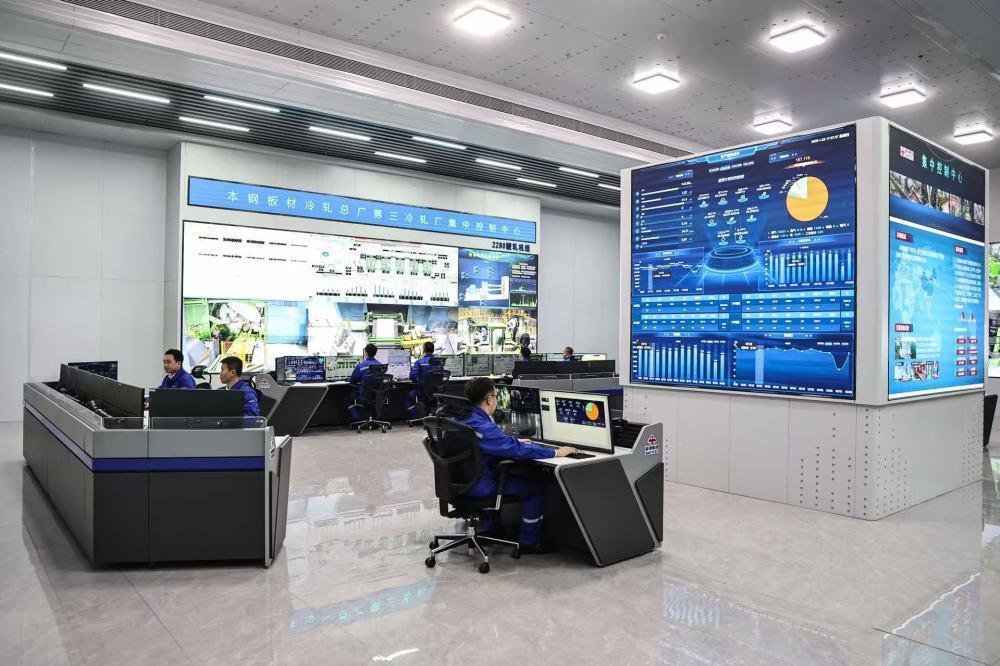 工作人員在鞍鋼集團(tuán)所屬的本鋼板材冷軋總廠第三冷軋廠集控中心監(jiān)控設(shè)備運(yùn)行情況。