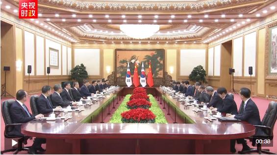 習近平指出,當前世界百年變局加速演進,國際形勢更加變亂交織。中韓在維護地區(qū)和平、促進全球發(fā)展方面肩負重要責任,有廣泛利益交集,應當堅定站在歷史正確一邊,作出正確戰(zhàn)略選擇。