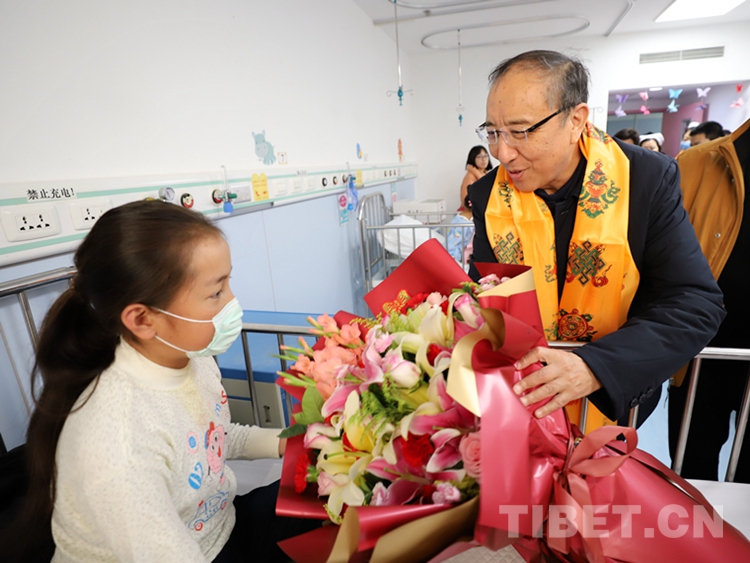 在兒研所醫(yī)務(wù)人員帶領(lǐng)下,斯塔一行來(lái)到病房,詢問(wèn)孩子們的身體情況,并祝她們?cè)缛栈謴?fù)健康。斯塔對(duì)“同心 共鑄中國(guó)心”活動(dòng)主辦方和兒研所醫(yī)務(wù)人員表示感謝,他認(rèn)為,這樣的愛(ài)心活動(dòng)讓西藏的老百姓能夠感受到祖國(guó)大家庭的溫暖,希望有更多的愛(ài)心人士參與到幫扶困難地區(qū)群眾的善舉中來(lái)。