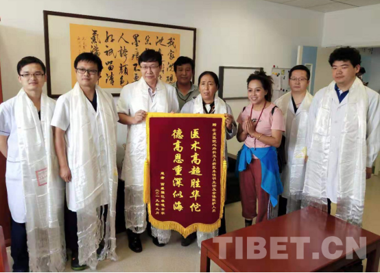 30日,即將出院的強巴卓嘎把一面書寫“醫(yī)術高超勝華佗,德高恩重深似海”的錦旗送到朱俊明手中,她禁不住熱淚長流,連聲說著:“吐基其,吐基其(謝謝)!”