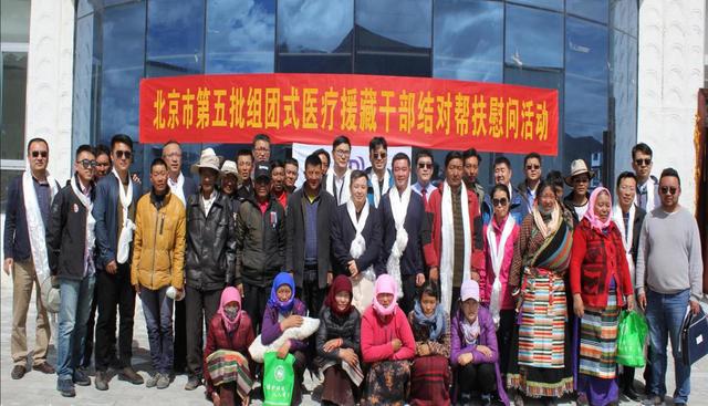 北京市第五批“組團(tuán)式”援藏醫(yī)療人才開展與當(dāng)?shù)厝罕娊Y(jié)對幫扶活動助力脫貧攻堅(jiān)。圖為援藏醫(yī)療隊(duì)員與當(dāng)?shù)亟Y(jié)對群眾合影。