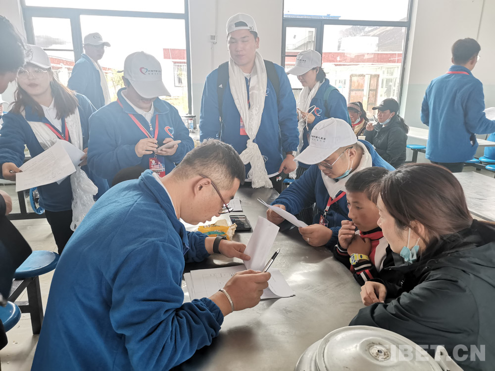 中國西藏網(wǎng)訊 9月25日,2020“同心·共鑄中國心”手拉手愛心助學活動在西藏自治區(qū)拉薩市舉行了啟動儀式,來自全國的140名志愿者集結(jié)于此,廣場上紅旗飄揚,志愿者組成了藍色的海洋。啟動儀式結(jié)束后,志愿者分成5個連隊經(jīng)過2.5個小時的跋涉,抵達海拔4300多米的羊八井鎮(zhèn)中心小學展開物資捐贈、愛心拍賣和一對一幫扶公益活動。