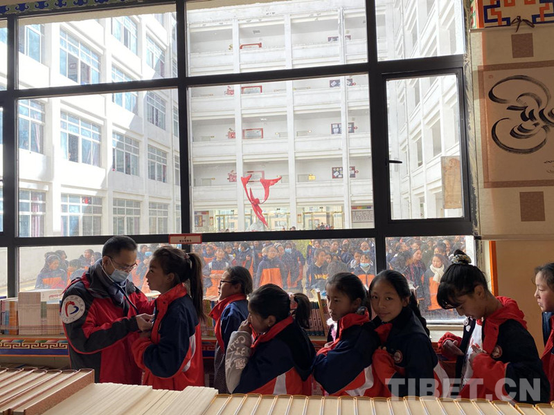 中國(guó)西藏網(wǎng)訊 湛藍(lán)的天空,萬(wàn)里無(wú)云。10月31日,在四川甘孜藏族自治州德格縣縣中學(xué)的圖書(shū)館里,瘦弱的7年級(jí)女孩四郎占姆,獨(dú)自坐在椅子上,臉上透露著些許緊張和不安。原來(lái)同班的54名同學(xué)在此次“同心·共鑄中國(guó)心”先心病公益篩查活動(dòng)中,通過(guò)北京醫(yī)療專家認(rèn)真檢查,唯獨(dú)她被留了下來(lái)等待著超聲儀器的進(jìn)一步檢查……