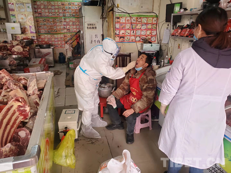 圖為醫(yī)務(wù)工作者對冷鏈?zhǔn)称废嚓P(guān)從業(yè)人員進行核酸檢測