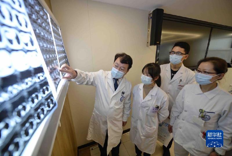 12月3日,在四川大學(xué)華西醫(yī)院,王文濤(左一)在與醫(yī)務(wù)人員討論病人治療方案。新華社記者 劉坤 攝