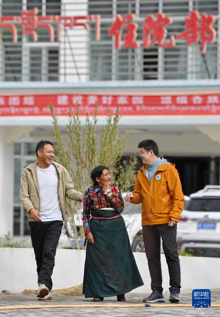 7月31日,在阿里地區(qū)人民醫(yī)院,中國醫(yī)學科學院整形外科醫(yī)院醫(yī)生王克明(右)和西藏自治區(qū)人民醫(yī)院醫(yī)生旦增念扎(左)陪伴即將做手術的牧民巴吉放松散步。新華社記者 張汝鋒 攝