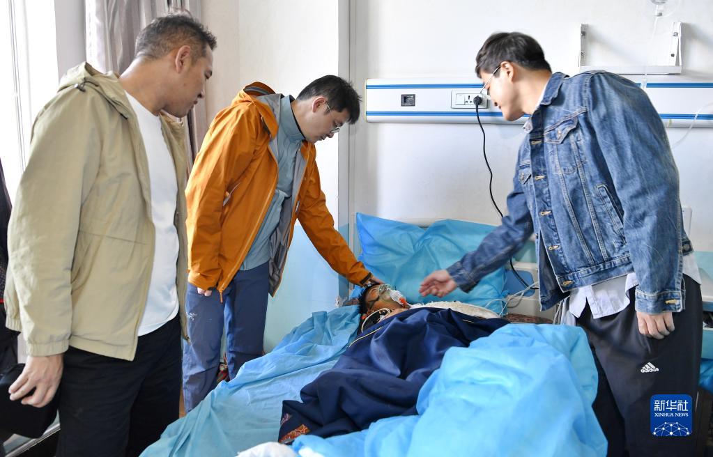 7月29日,在阿里地區(qū)人民醫(yī)院,醫(yī)生們?yōu)榇诫窳鸦颊邥\。新華社記者 張汝鋒 攝
